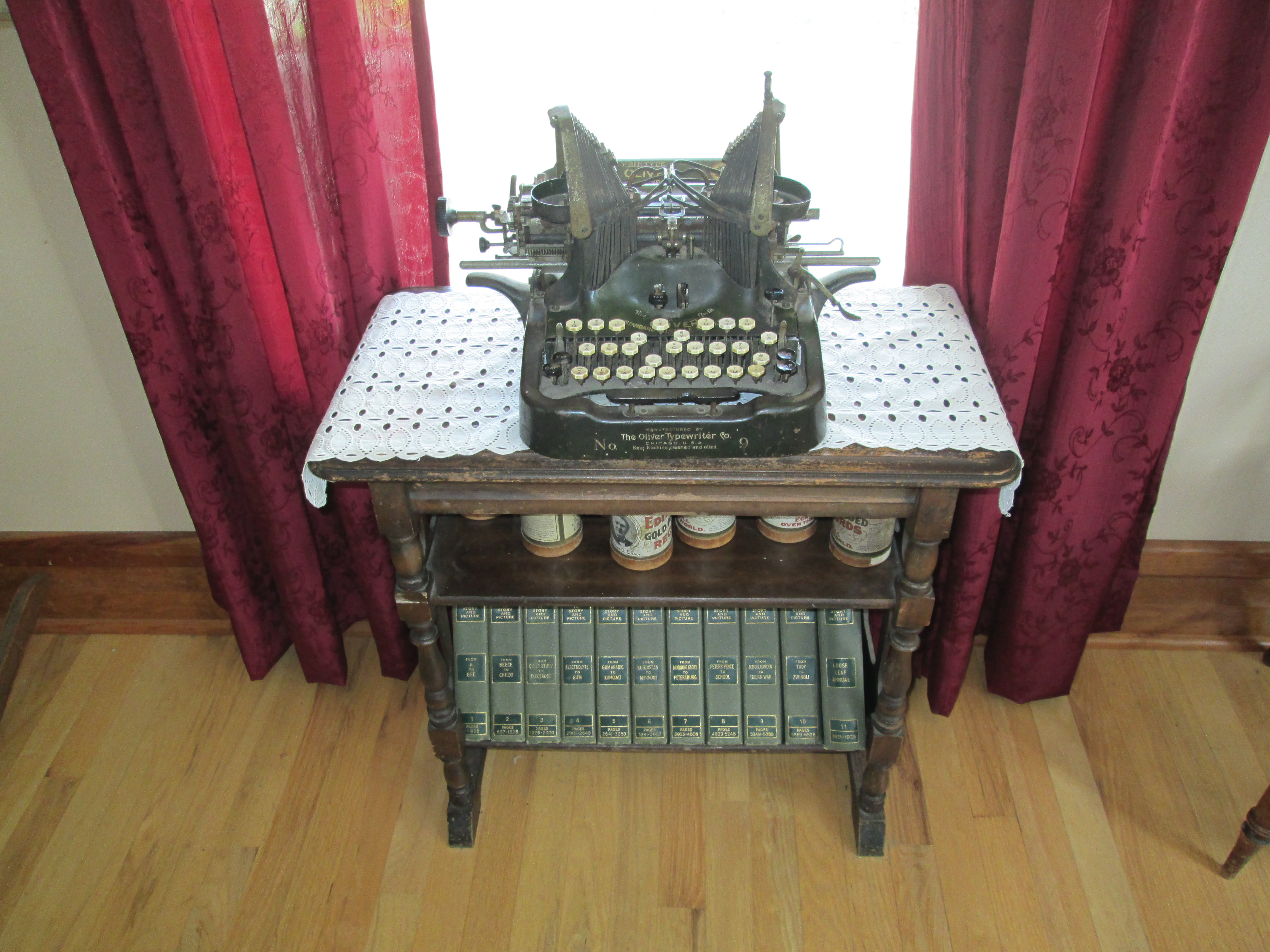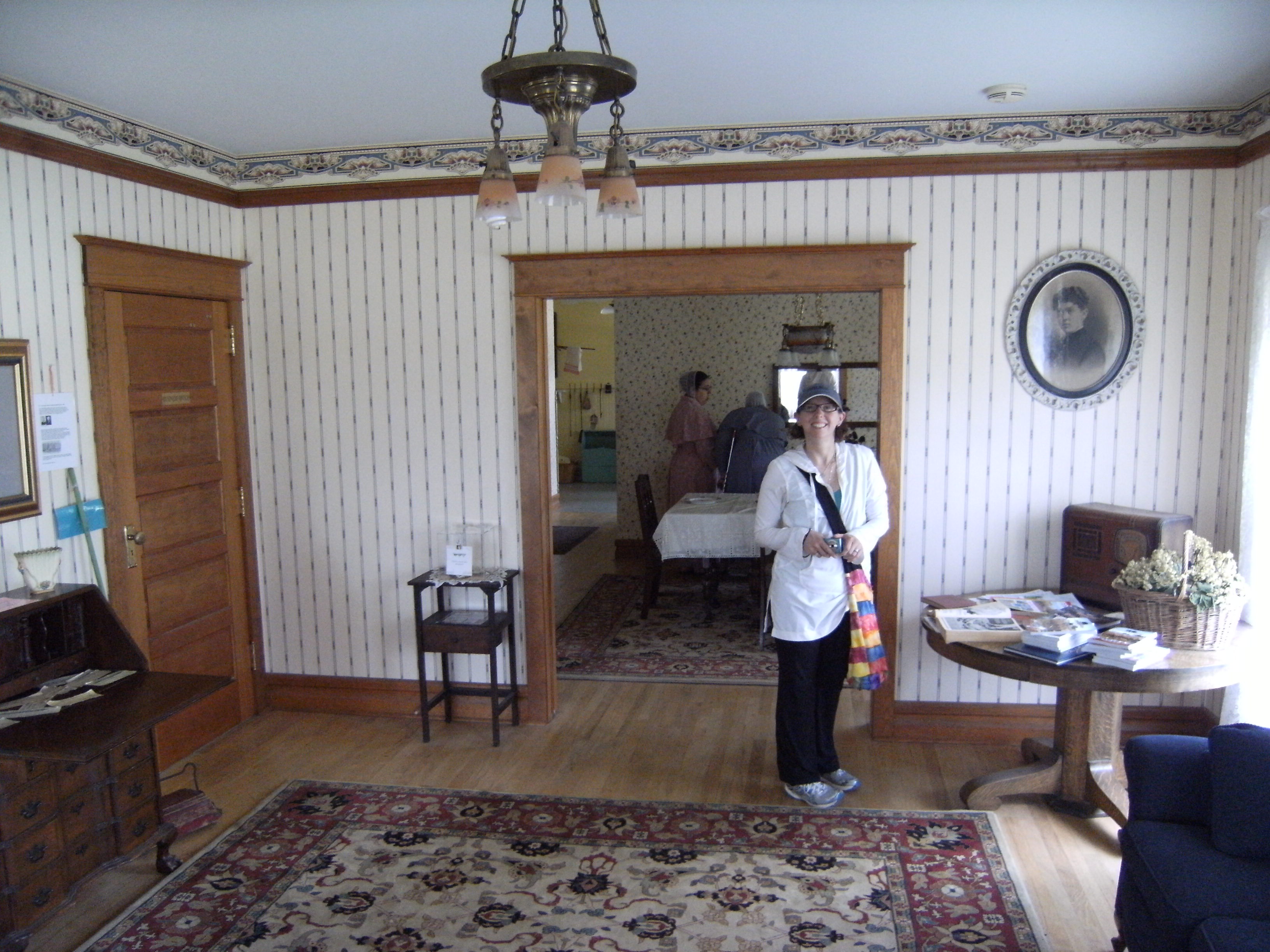 It is a huge State Park that has an old farm house on the property that you can go around in and touch everything. You can open the cabinets and play the piano and sit at the dining room table. Everything in there was from the olden days. There were horses in the yard along with chickens, pigs and a bunch of cats and kittens. They try to stay true to the time period and they use big horses to plow the fields and they use what they grow to feed the animals on the park. It is very self-sustaining.