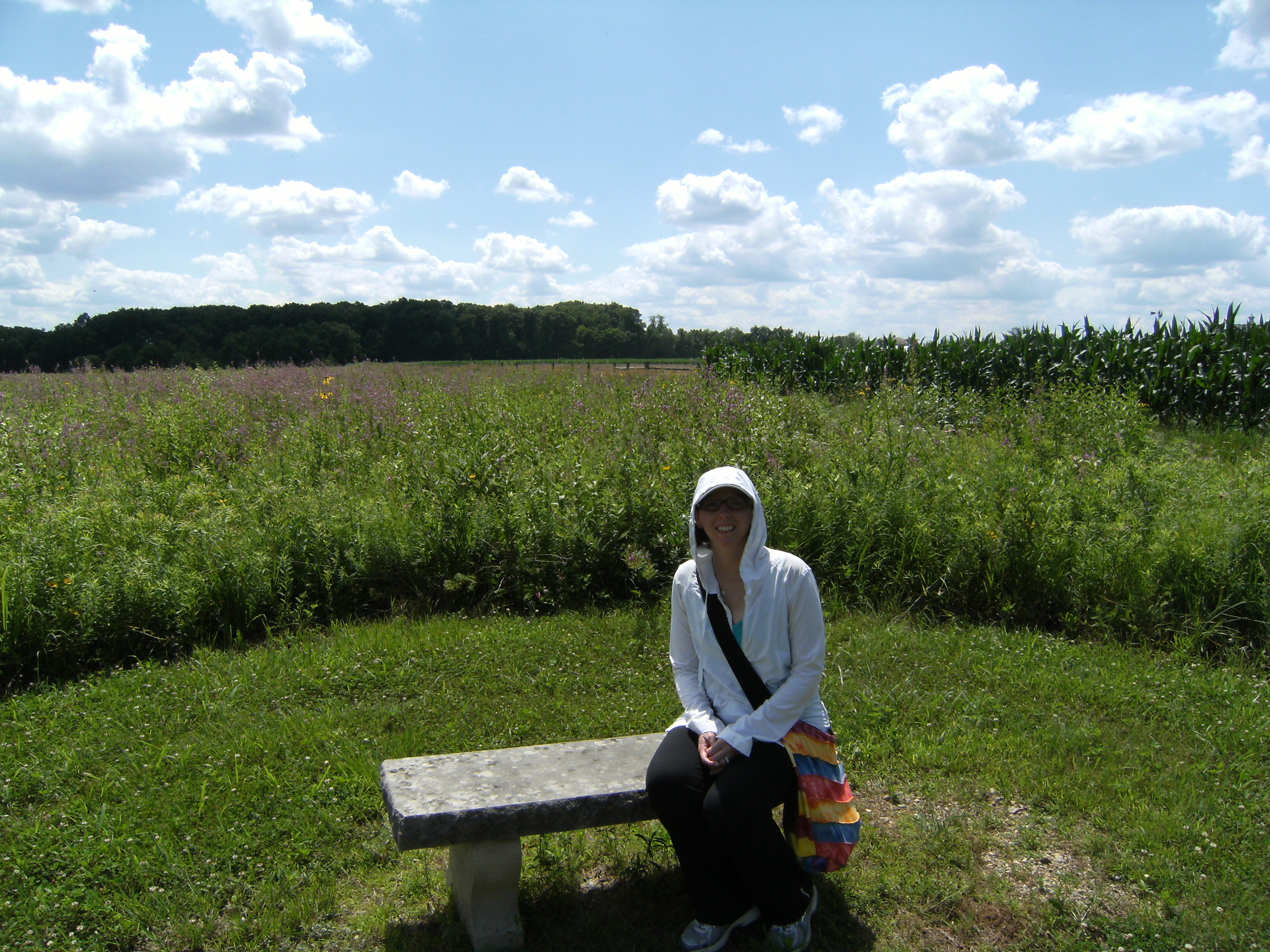 So on the Fourth of July Jesse and I decided to go to Prophetstown. It is not a far drive from our home in Lafayette and it was a beautiful day out. This place is very cool. We stopped at the visitor center first and met a very nice and enthusiastic naturalist that worked there at the park. She told us about all the trails and the working farm house and the water park. She was also kind enough to point out that here in IN there are no poisonous snakes or black widows like we had to worry about in NC. It makes walking in tall grass and woods much nicer.